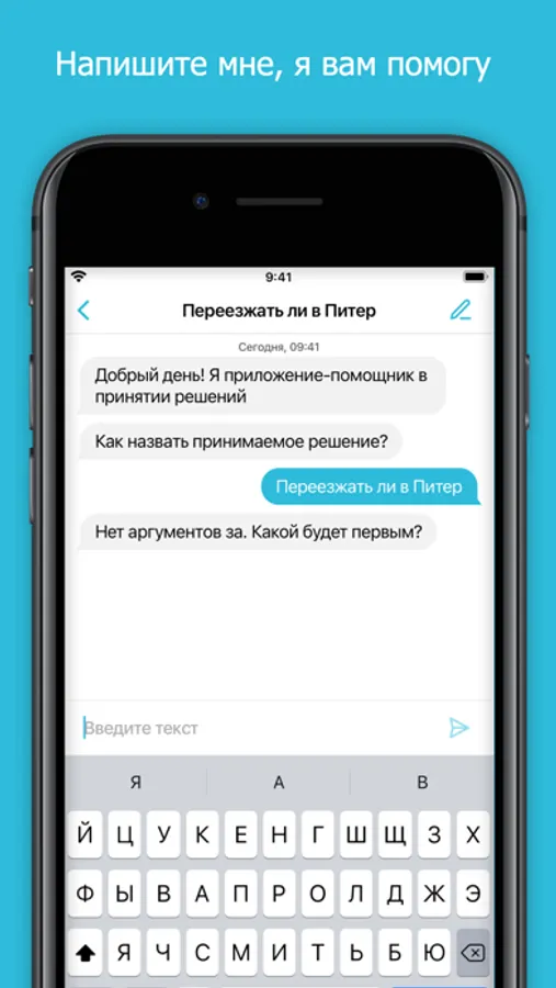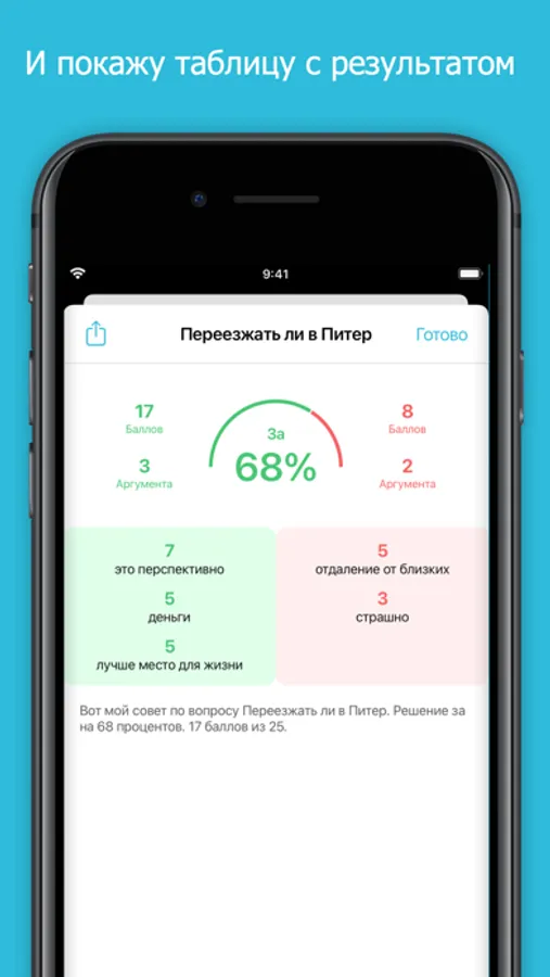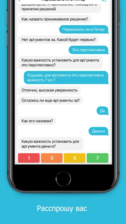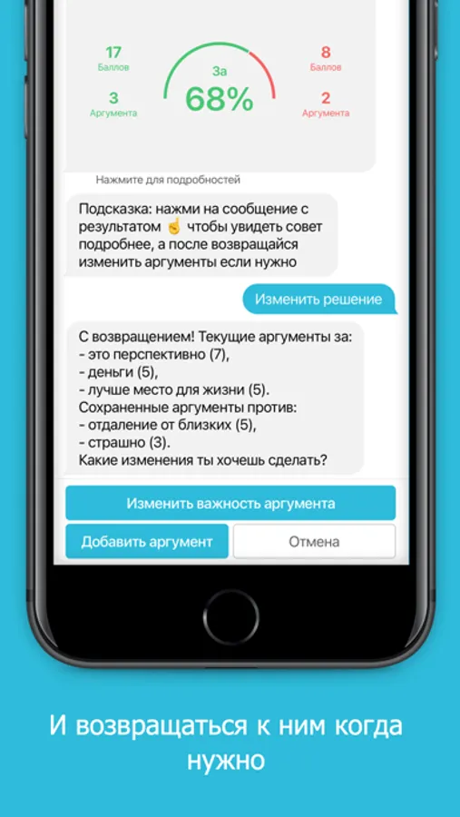 Вы лучше осознаете свое решение в процессе диалога с приложением, а полученный совет станет отправной точной для принятия решения.