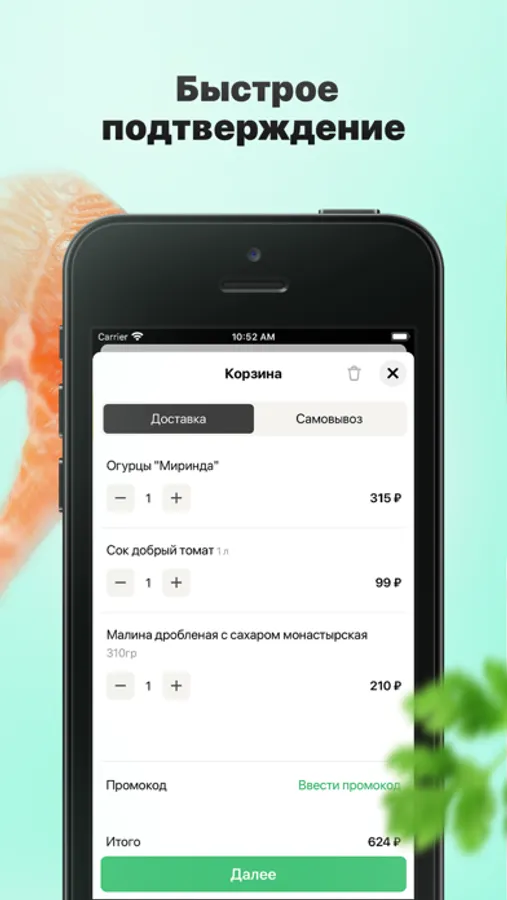— Быстрый заказ с мгновенным подтверждением через приложение.