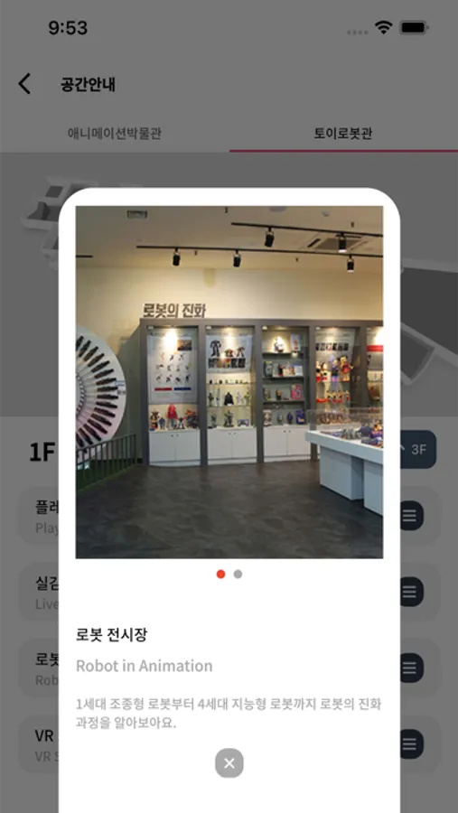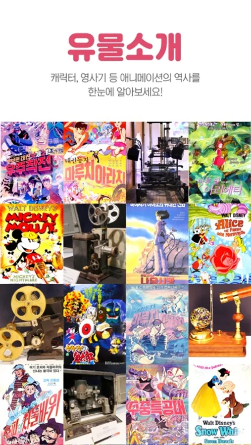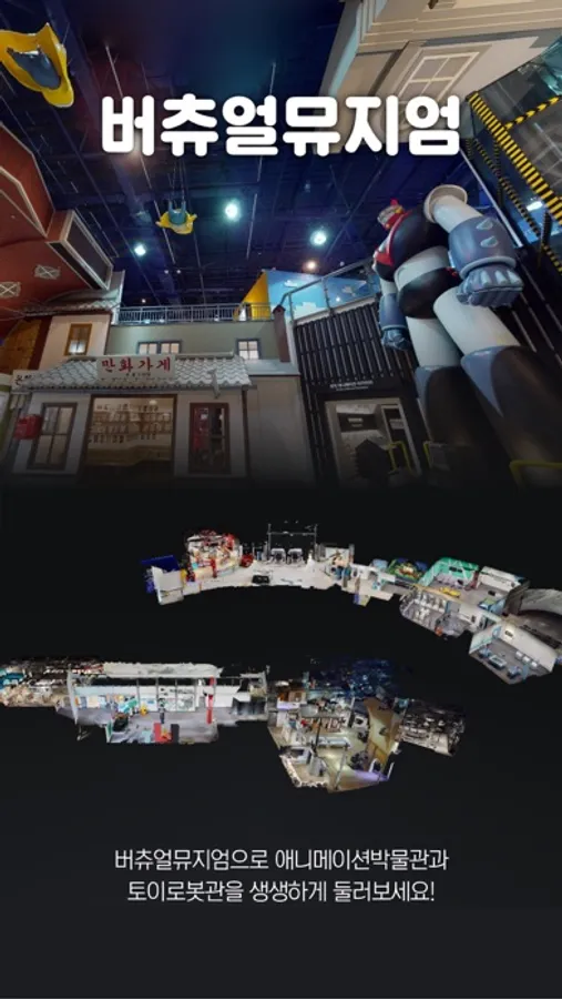 우리나라 유일한 애니메이션박물관은 애니메이션에 관한 자료를 발굴 · 수집 · 보관 · 전시 · 연구함으로써 이에 대한 올바른 인식과 그 소중함을 일깨워 국민정신문화의 산 교육장으로 만들고자 2003년 10월 1일 개관되어 현재까지 420만명 이상(토이로봇관 포함)이 찾고 있습니다.