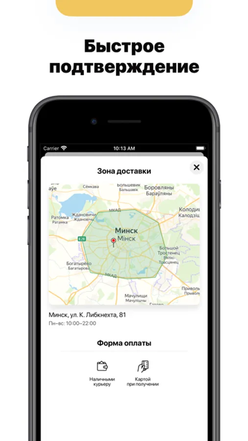 — Быстрый заказ с мгновенным подтверждением через приложение.