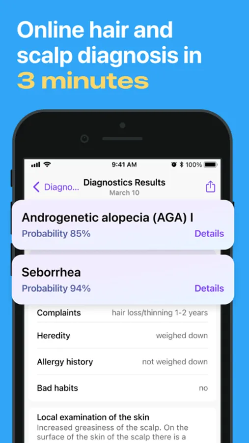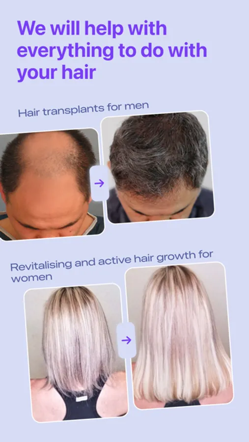 - Comprehensive Hair Analysis: Utilize the power of artificial intelligence to receive a detailed analysis of your hair and scalp condition, uncovering the underlying causes of hair loss and related issues.