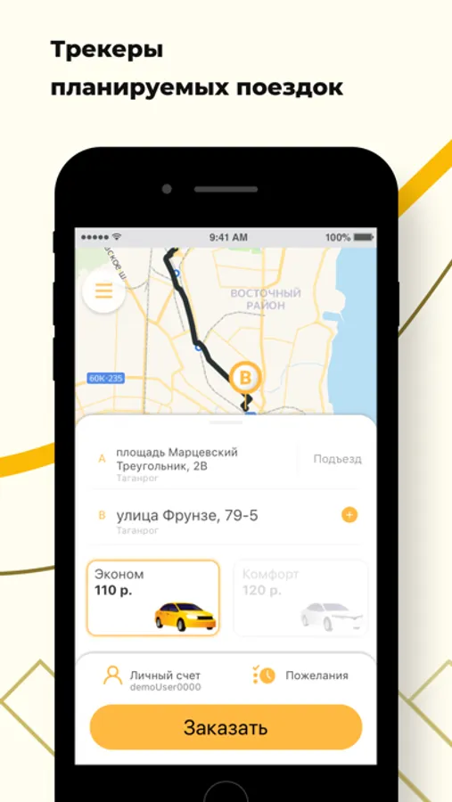 Откройте приложение, укажите адрес и закажите такси, нажав на одну кнопку.