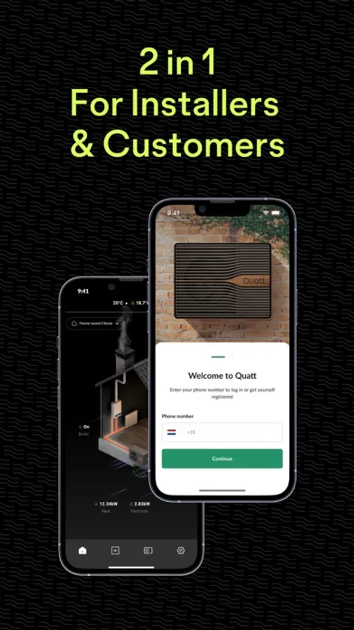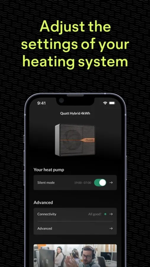 App to install, manage and operate your Quatt Hybrid. Switch on and off, set temperature, adjust sound level. Contact Quatt Support directly.