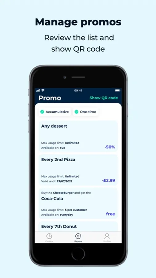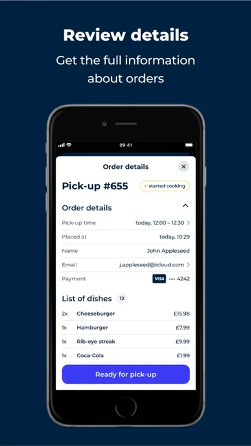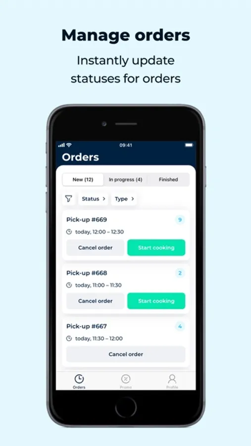 • Receive updates – push notifications arrive when orders are placed or cancelled;
