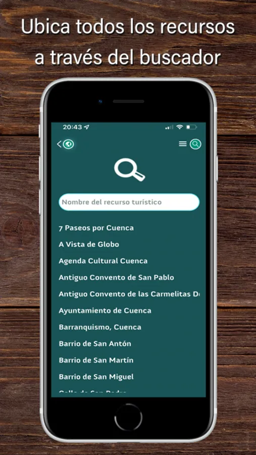Con nuestra app podrás conocer de primera mano una guía en formato digital configurada como oficina virtual de turismo sobre Cuenca y su entorno, rutas guiadas por GPS, naturaleza, actividades e itinerarios especiales, propuestas gastronómicas, culturales y de ocio.