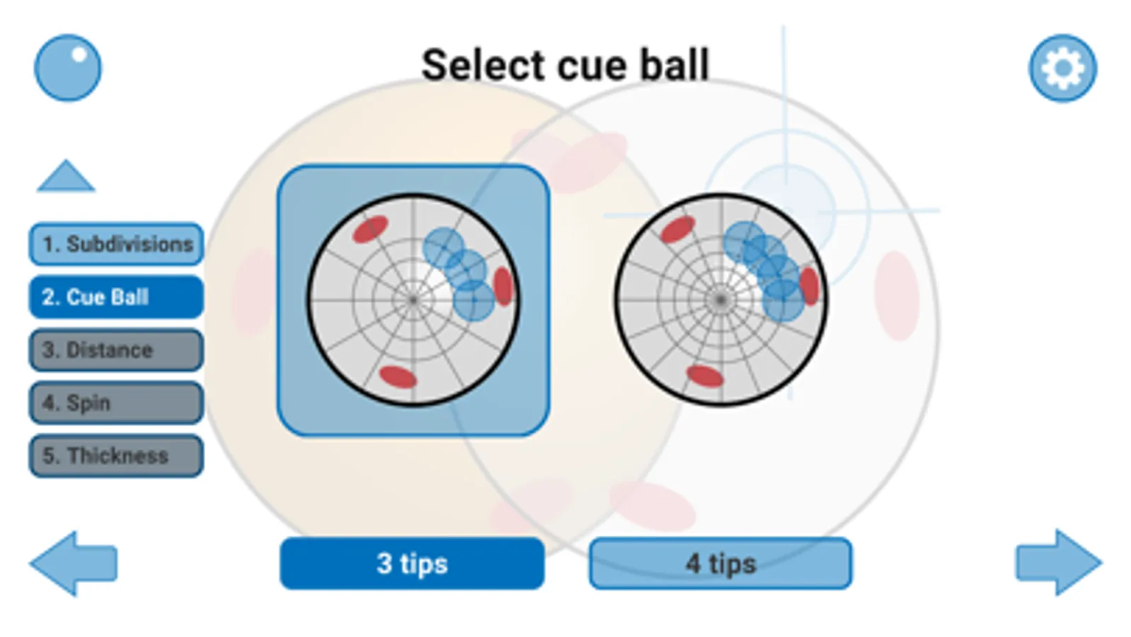 Billiards Aiming Assistant is the tool that will actively help you to create a mental mapping of all relevant aiming ball thickness' you mostly use as a player.