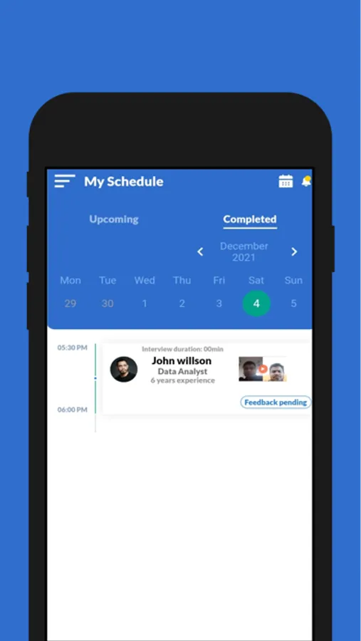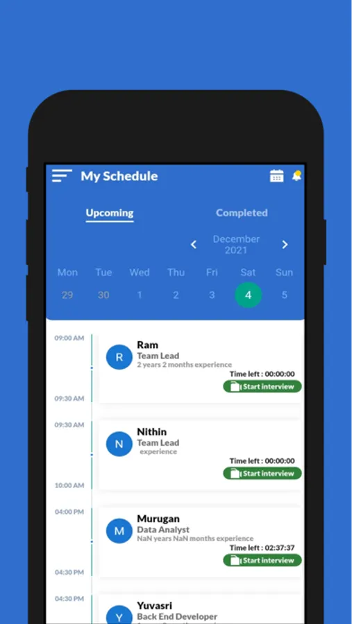 You can view the list of schedules. You can start the interview process as per the schedule in your channel. You will get connected with the candidate through a video call.