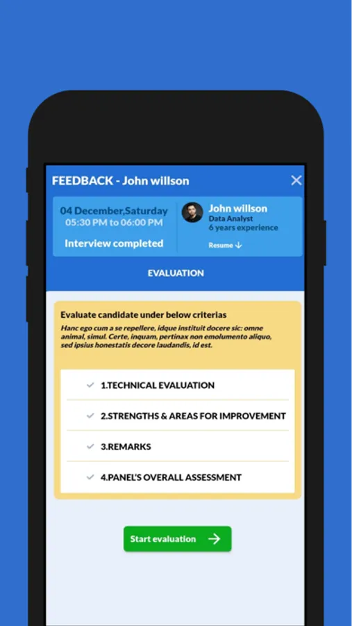 Myshaa App has carefully analyzed and provided different sections/criteria for evaluating the candidate. Based on the criteria, you may provide your honest feedback about the candidate, post interview.