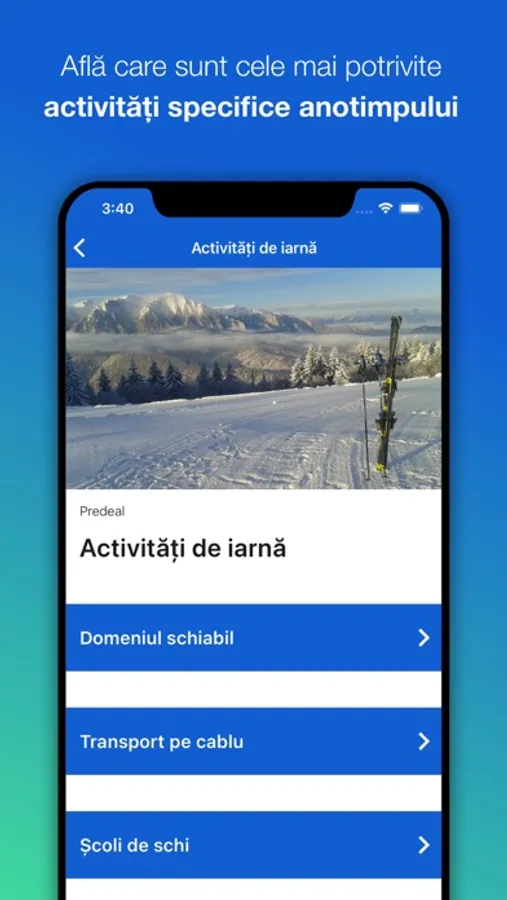 Predealul este o destinație potrivită pentru orice anotimp, însă aplicația evidențiază două secțiuni principale aferente sezonului de iarnă și celui de vară.