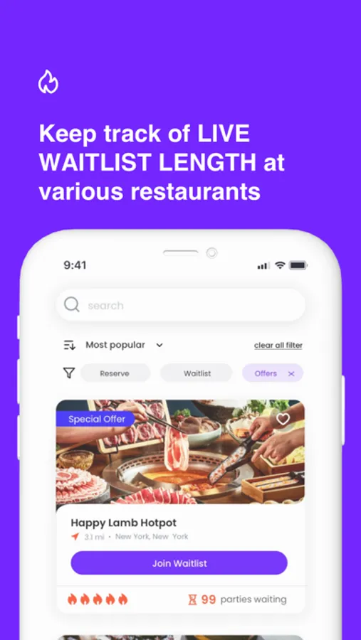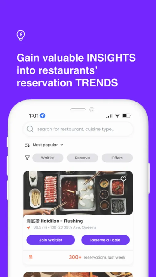 - Sort places by real-time line lengths/ reservation trends/ distance/ popularity