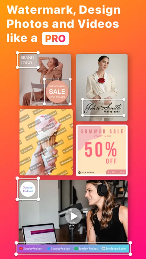 * Add your BRAND social media username, info, website, call number, email, link, or location as a watermark easily with our Watermark Templates