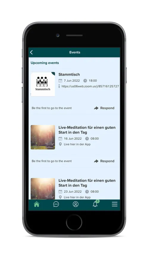 Außerdem hast Du die Möglichkeit, Dich in verschiedenen Gruppen oder Chats mit Gleichgesinnten auszutauschen, sie kennenzulernen und Dich mit ihnen zu vernetzen. Wer möchte, bekommt täglich einen Tagesimpuls auf sein Handy, um kurz Inne zu halten.