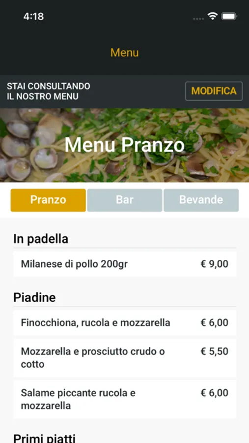 L'app Bar Commercio Spoleto permette ai clienti di consultare il menu del bar ed effettuare prenotazioni per takeaway di pranzi o cialde di caffè.