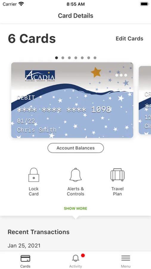 Protect your debit and credit cards by sending you transaction alerts and giving you the ability to define when, where and how your cards are used. Simply download the app to your smartphone, then customize your alert preferences and usage settings to monitor and manage your cards.