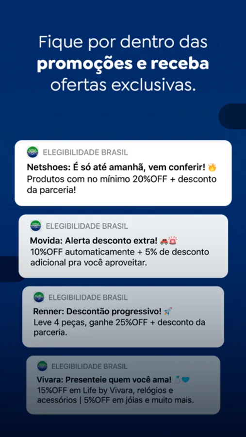 Se você é um beneficiário da Elegibilidade Brasil, com este aplicativo você poderá receber promoções exclusivas em diversos segmentos, acessar sua carteira de associado e muito mais!