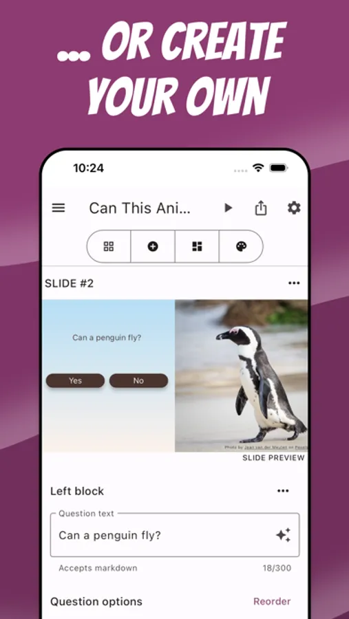 With Faabul, you can elevate the look and feel of your quizzes by presenting them as slide-based presentations. This feature allows you to seamlessly integrate questions with other multimedia elements such as images and text slides, creating a visually appealing and engaging quiz experience for your audience.