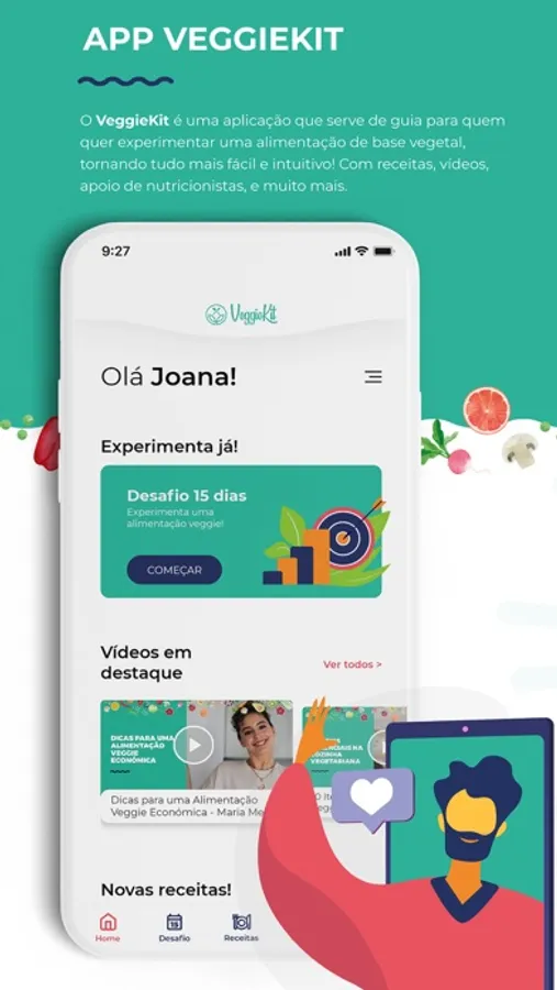 A APP do VeggieKit é uma aplicação que serve de guia para quem quer experimentar uma alimentação de base vegetal, tornando tudo mais fácil e intuitivo! Com acesso a um desafio orientado de 15 dias, receitas, um quiz interactivo, apoio de nutricionistas, e muito mais, tudo de forma gratuita!