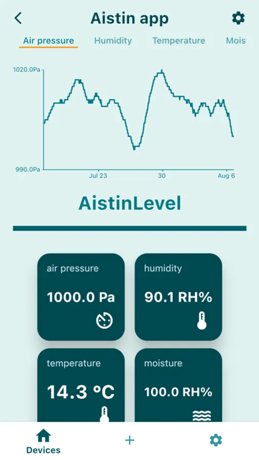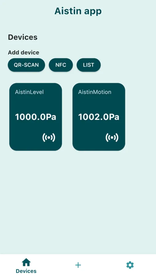 Fetch Device information from the cloud service using a QR code:Just read the QR code with Aistin App you received from the device supplier and device information and measurement data are available on the application desktop. Or you can just select available devices on your device fleet from the list.