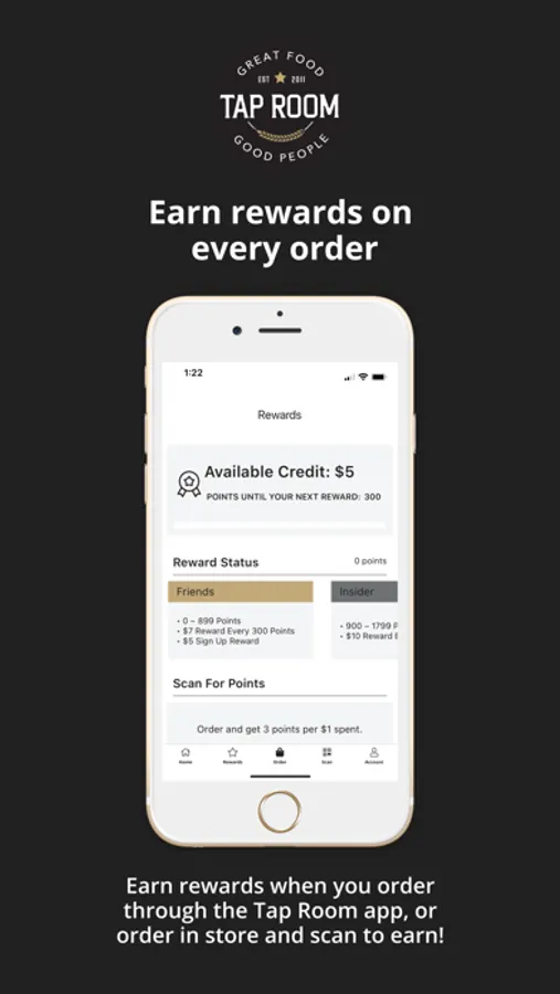 By ordering directly from Tap Room via our official app, you’ll save money over third-party delivery app fees and receive great rewards and special offers.