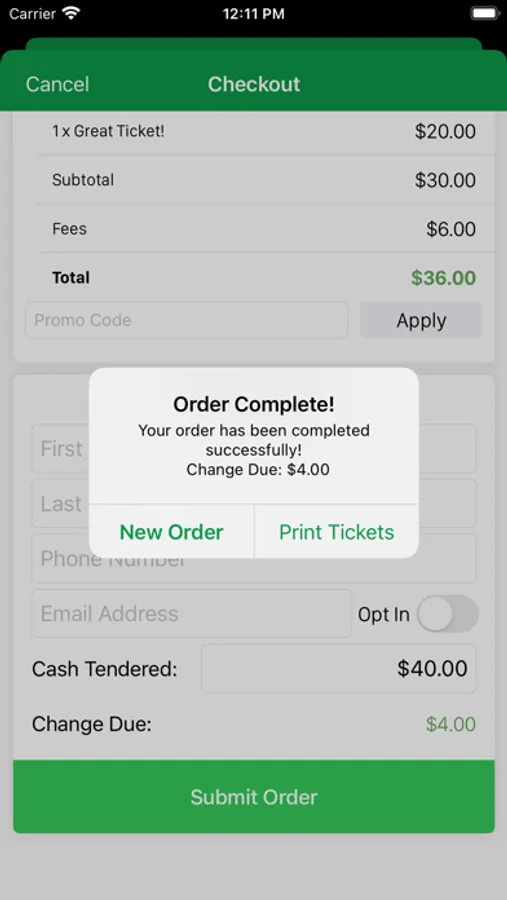 - Create orders and accept cash or credit cards (certain audio card readers are supported, see our website for more details)