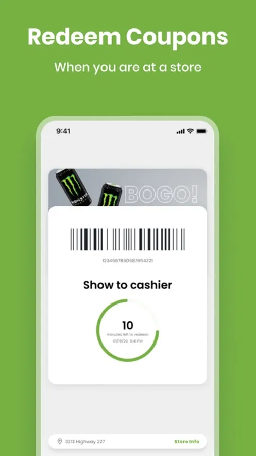 Simply tap the orange redeem button and show your phone at purchase to redeem your coupons.