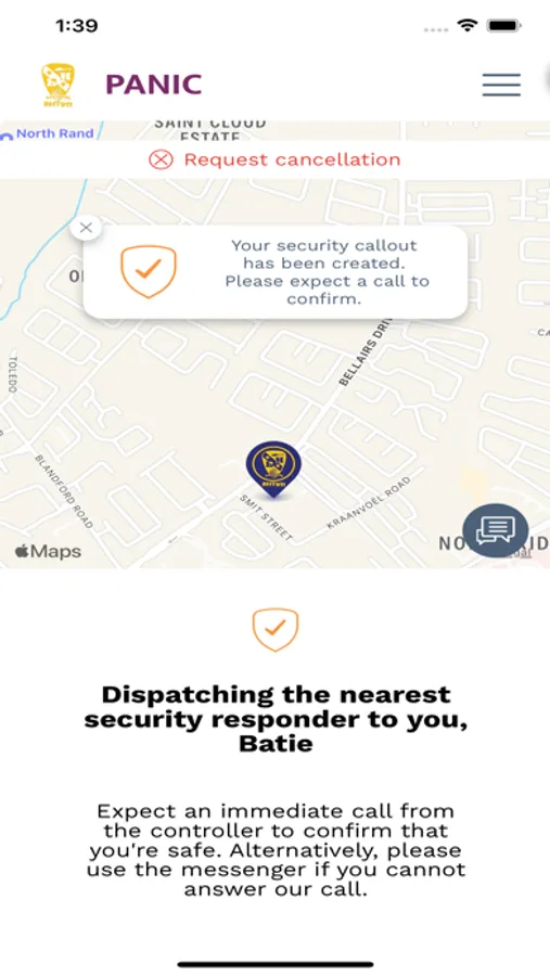 Just push the panic button and our control room will call you back immediately to confirm the nature of your emergency, while a response vehicle makes its way to your location via GPS.