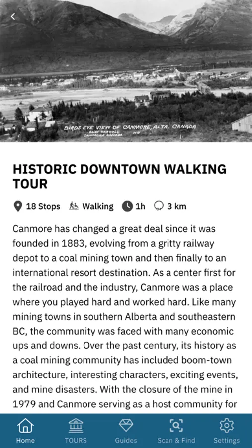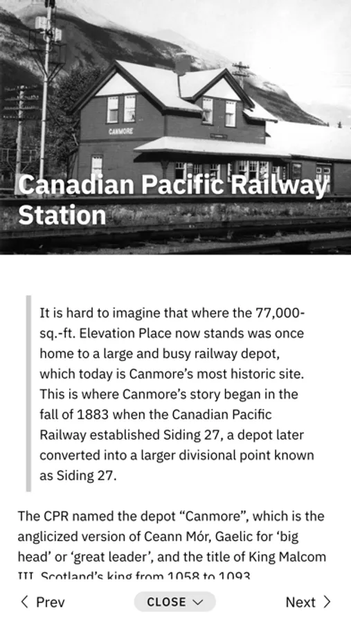 Known as Chuwapchipchiyan Kudi Bi by the Stoney Nakoda, Canmore is defined by the rugged Canadian Rocky Mountain landscape that surrounds us and shaped by the culture, language and traditions of those that have called Canmore and the Bow Valley home for over 10,000 years. The Canmore Museum's Digital Tours app provides enhanced opportunities to explore and experience Canmore's mountain landscapes, culture and community.