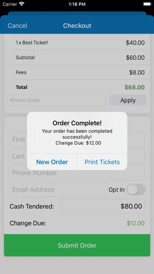 - Create orders and accept cash or credit cards onsite (for credit cards please see our website for more details)