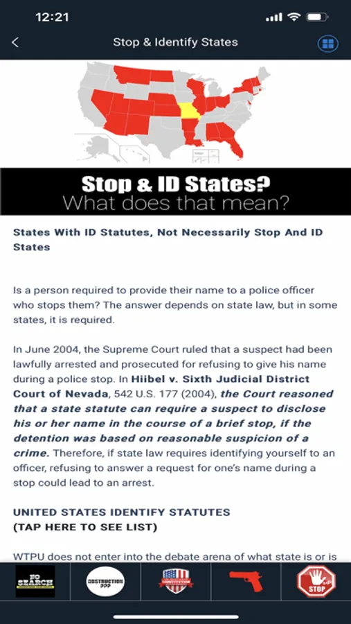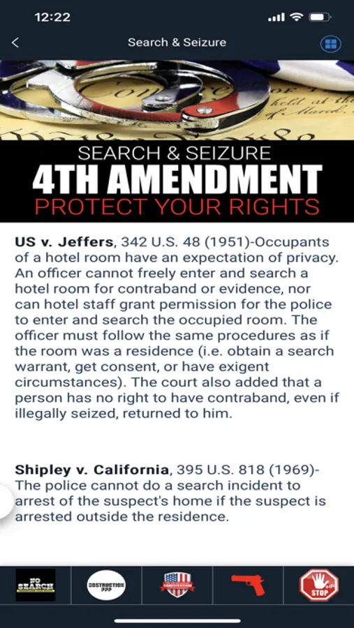 Our app allows you to find and quote the law to cops in a matter of seconds. The app features different categories so you will easily find pertinent information that you need.