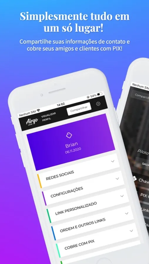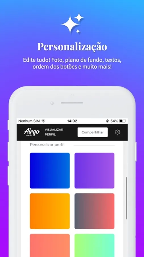 O Airgo é o seu cartão de visitas digital, interativo e tecnológico. Na sua configuração é possível estabelecer seu perfil pessoal ou empresarial de acordo com sua necessidade.