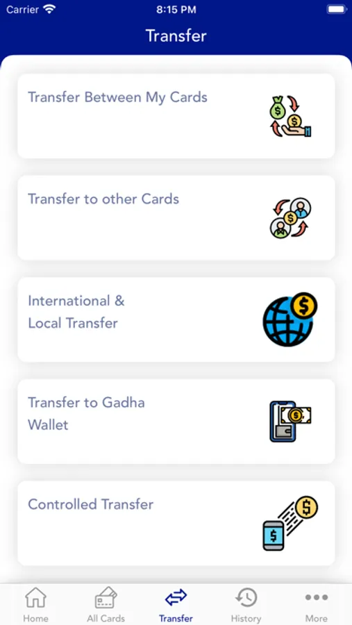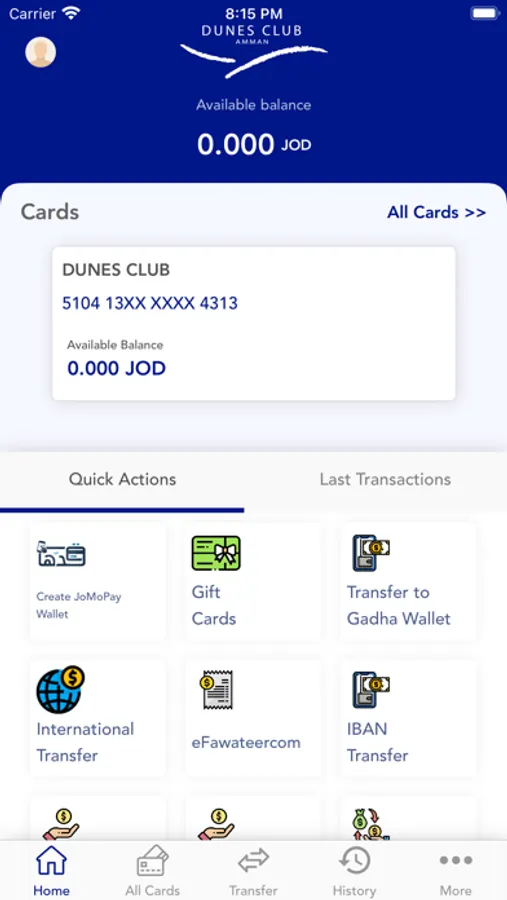 • Send and receive money between Dunes cardholders