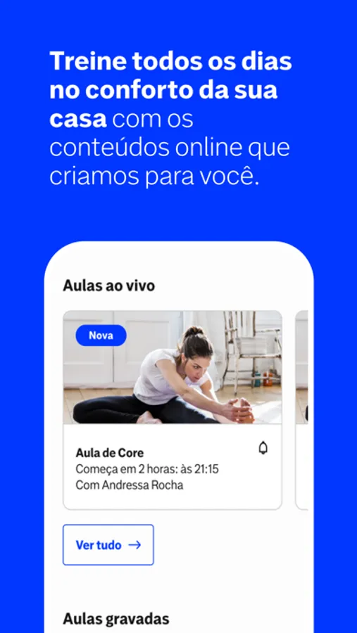 - Assista vídeo-aulas ao vivo e gravadas das mais diversas modalidades de atividades físicas;