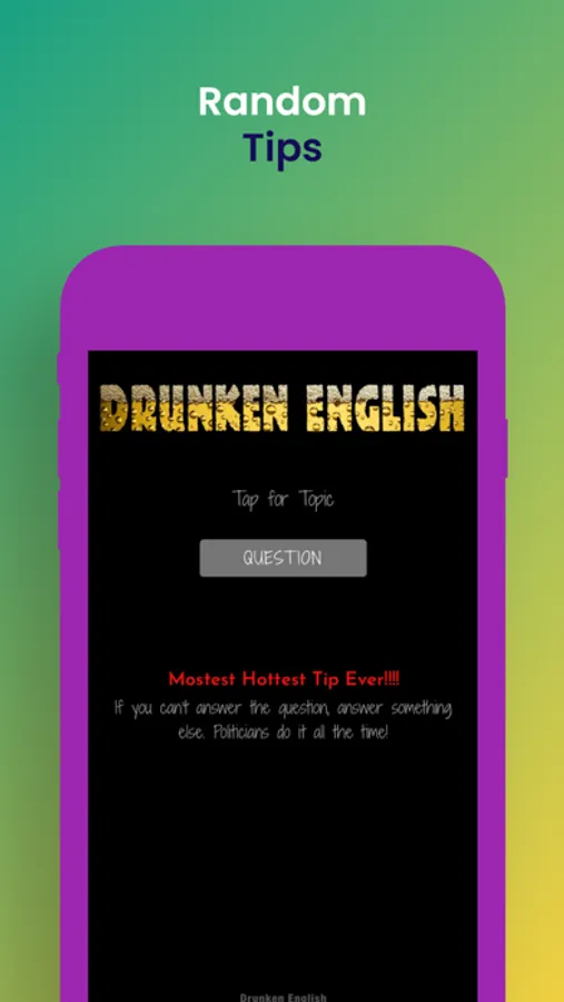 The content of Drunken English is risqué at times, the kinds of topics young adults sometimes seem preoccupied with, but students always have the option of opting out of answering, choosing a random penalty instead. Drunken English is not recommended for teens 16 or younger.