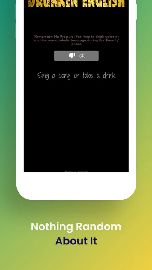 One unshakeable rule of Drunken English is that participants should never be coerced into drinking alcohol. That condition is stated plainly throughout the app with high profile positioning and translated into 8 key languages on the initial landing screen.