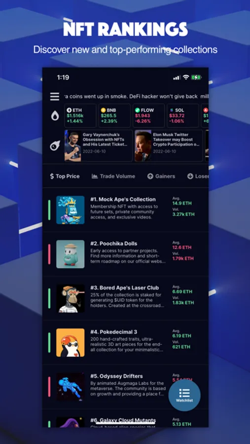 Get best data analytics for major NFT collections. Collect and trade with greater clarity using directly blockchain-sourced info, visualized by an independent research platform. Further, read up daily on important crypto news articles and price quotes. Stay in the know for the latest crypto movements and NFT intrigues.