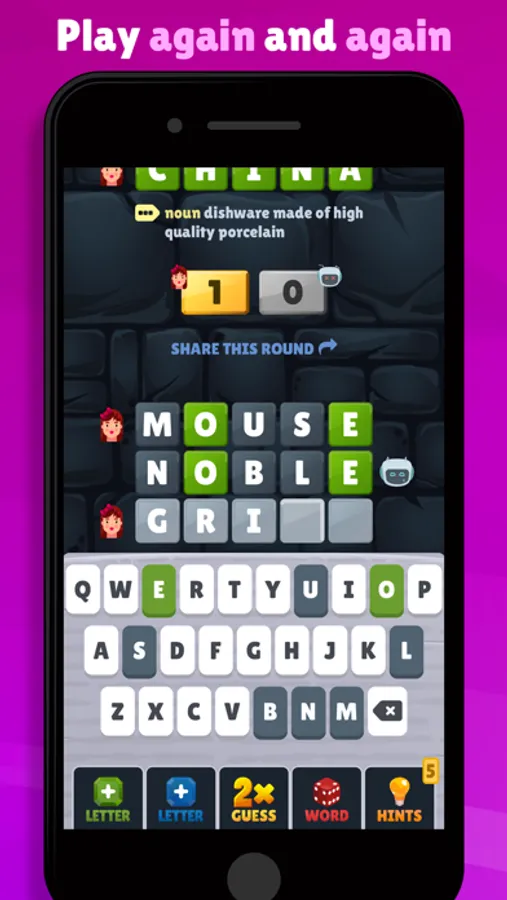 Do you love playing and solving word games? Challenge yourself by playing against Robyn, the dictionary master! Work out a hidden five-letter word before Robyn does and climb the global leaderboard.