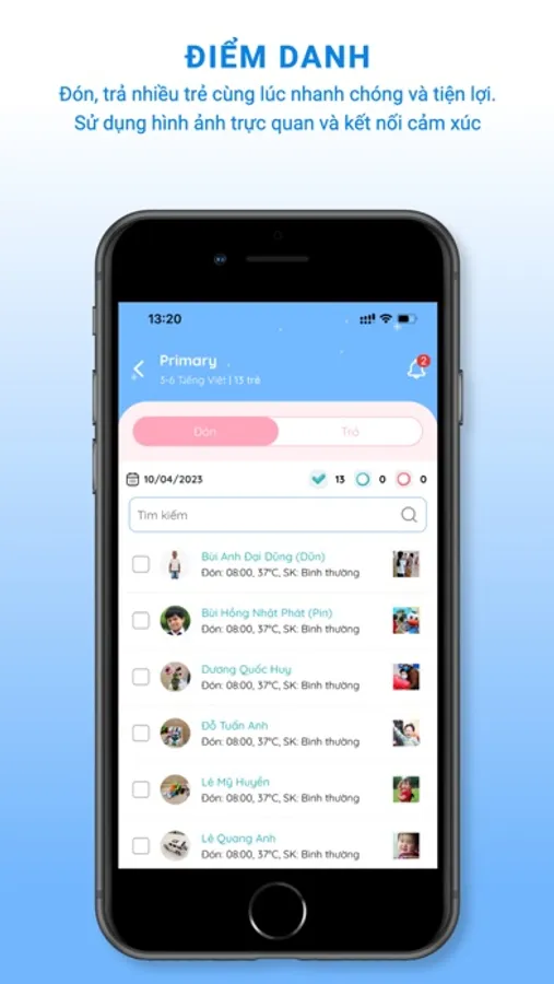 - Điểm danh nhanh chóng và thuận tiện, kết hợp hình ảnh trực quan giàu cảm xúc