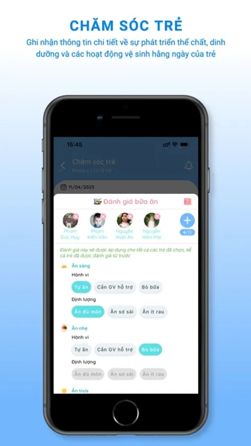 - Ghi nhận thông tin chi tiết về sự phát triển thể chất, dinh dưỡng và các hoạt động vệ sinh hằng ngày của trẻ