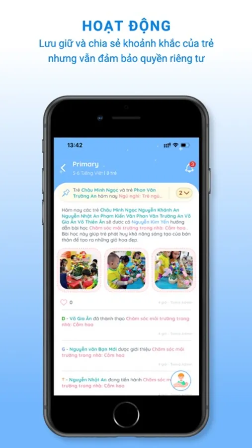 - Ghi lại và lưu giữ Nhật Ký Hoạt Động của trẻ ở trường