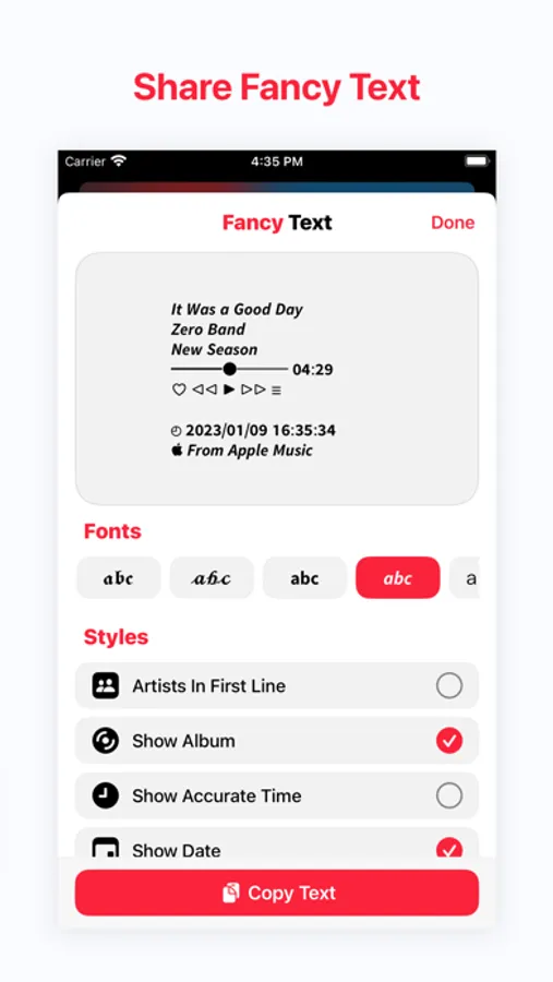 In addition to its landscape mode and quick add features, Music Plus also supports high-quality artwork saving and sharing music using fancy text. More new extended features are coming soon.