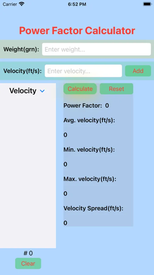 To calculate the Power Factor you have to enter the Weight of projectile in grains.