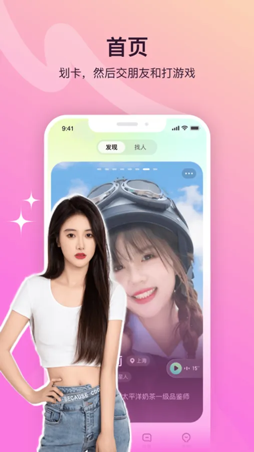 ‒ 通过平台的推荐选择想要交往的人,一旦匹配到对的人,你可以参与话题,表达意见,认识和赞赏你感兴趣的小伙伴。