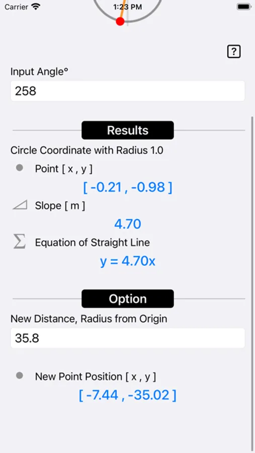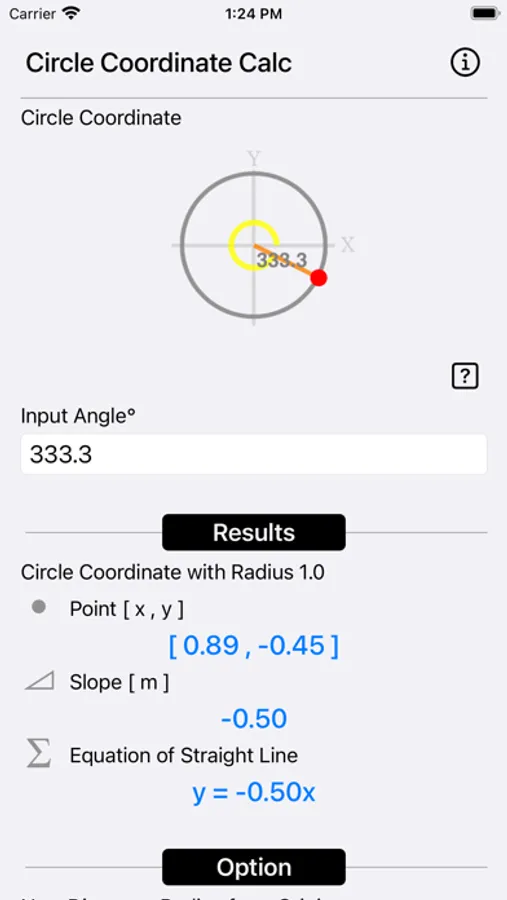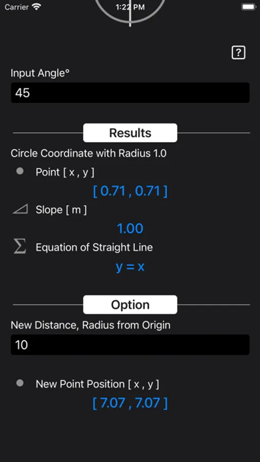 Unit Circle Coordinate Calculator calculates the sine, cosine (x , y) values of any given angle.