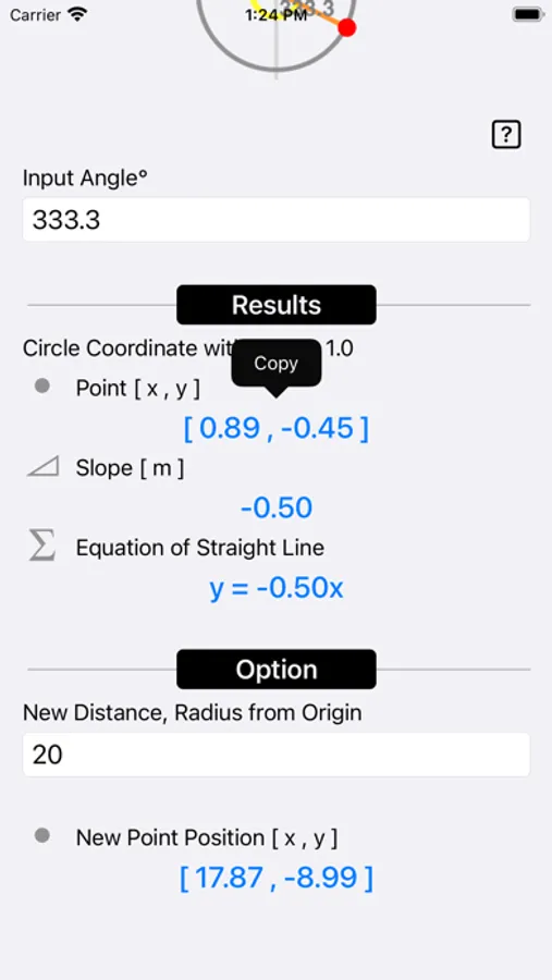 • Output the x coordinate and y coordinate by giving the new distance from origin.