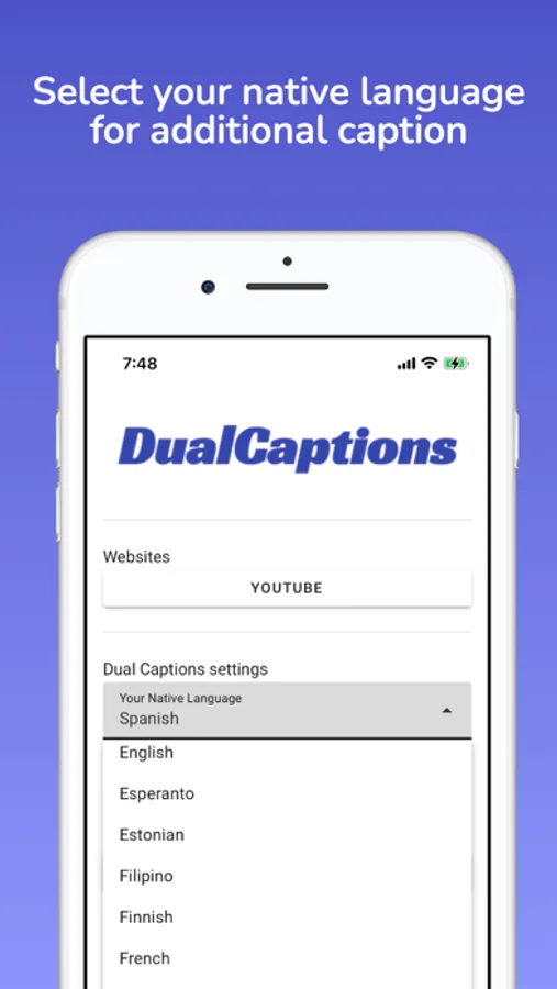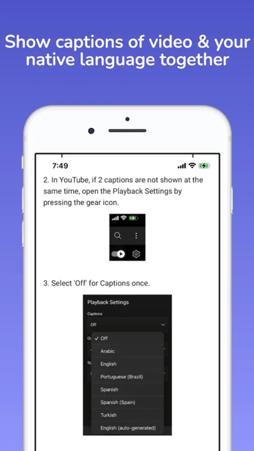 Dual Captions for You> Tube is a free Mobile app that allows you to watch your favorite videos on YouTub with two sets of captions simultaneously, to help you learn new languages or just enjoy the video a little bit more!