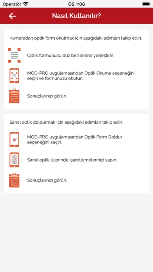 ■ Mobil Optik Değerlendirme uygulaması MOD-PRO'yu açın. Formunuzu okutun.