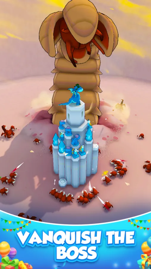 Players need to defeat enemies by Merge weapons of the same level to power them up, grow army to clear all the enemies.