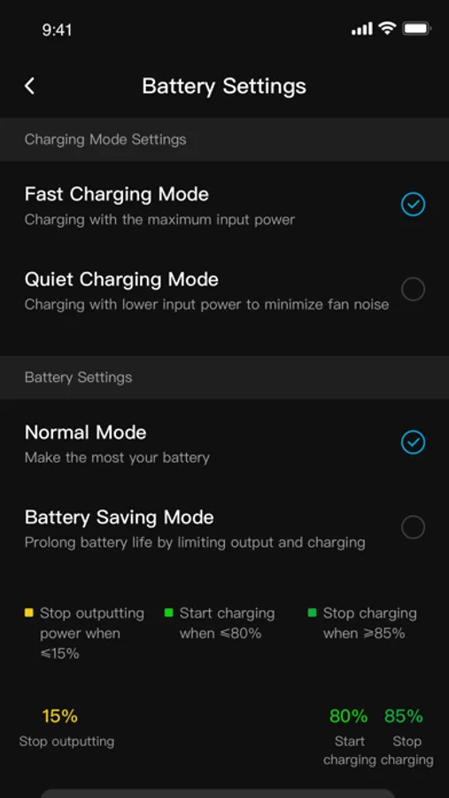 -Use smart charging to perform scheduled charging during low power consumption periods.