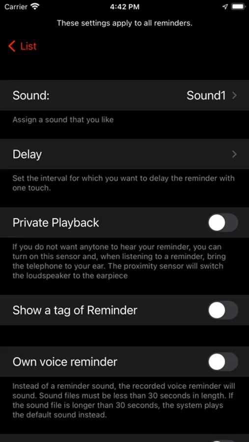 - Reminder with your own voice, when instead of a reminder signal, the recorded voice reminder sounds