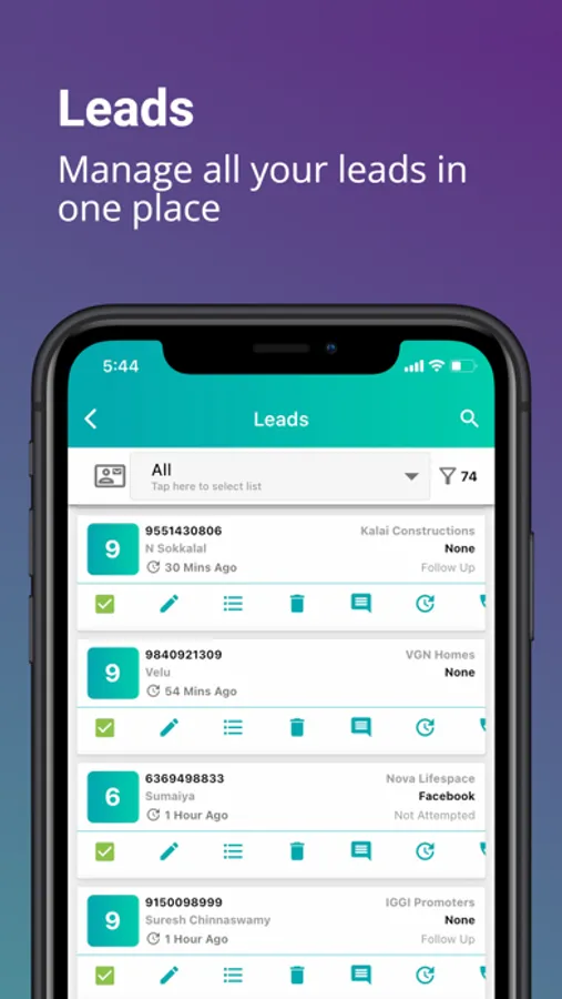 This mobile application covers features like Leads Management, Appointments, Invoices, Payment, Contacts, Project management features, etc...
